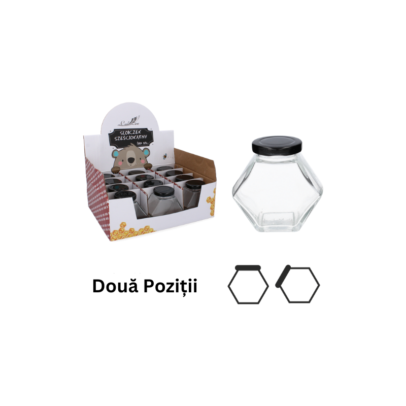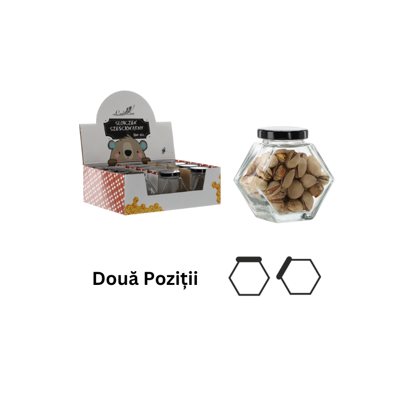 Acest borcan cu capac în formă hexagonală este alegerea ideală pentru păstrarea și servirea mierii proaspete și delicioase. Cu un design distinctiv și elegant, borcanul adaugă un plus de farmec oricărui cămin sau eveniment.