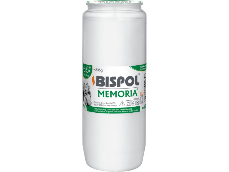 Candela rezerva WO4 Alb Bispol este o rezerva pentru candela cu ardere lunga, conceputa pentru utilizare in candele memoriale si comemorative. Ofera o durata de ardere de aproximativ 72 de ore (3 zile), fiind ideala pentru mentinerea unei flacari constante pentru perioade mai lungi.