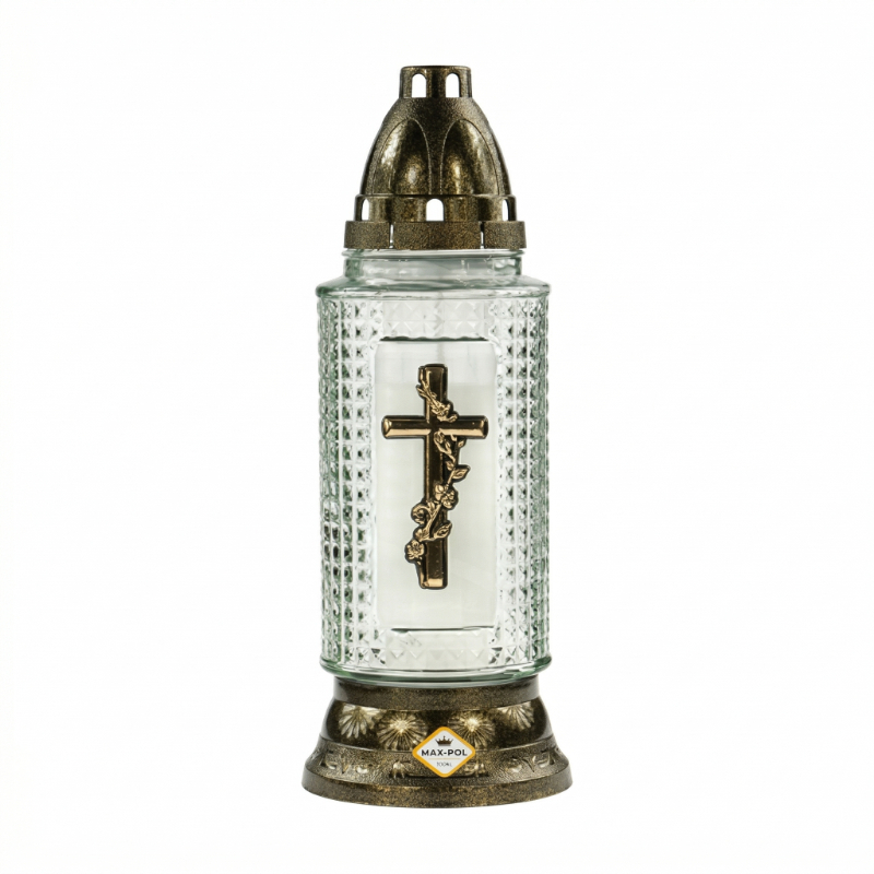 Elementul central – crucea aurie aplicata pe corpul candelei – confera produsului o semnificatie religioasa puternica, fiind ideal pentru comemorari, parastase si sarbatori crestine.